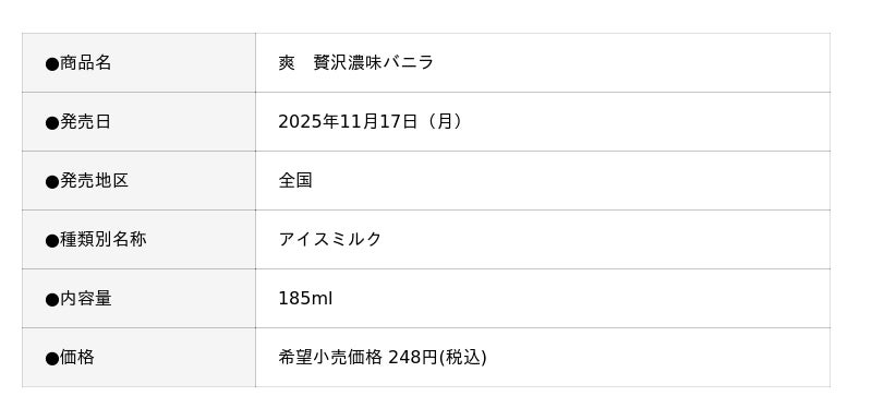 ワンランク上の爽体験!濃厚ミルクソースをたっぷり使用した贅沢な爽が登場!『爽 贅沢濃味バニラ』2025年11月17日(月)より全国で発売