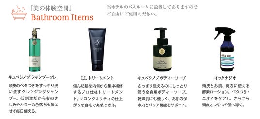スキンケアやダイエットには専門家が存在する一方で、ヘアケアの専門家はほとんど存在しません。実に99%の人が間違った方法で頭皮と髪を扱っているという現状があります。 「艶と潤いは、1日で作れない。だからこそ、日々のケアが大切です」というコンセプトのもと、特別なサロンではなく、毎日のバスタイムから始まる本質的な美しさを追求する「Beyond Beauty ― 美のその先へ」を体験いただける「美の体験空間」を企画いたしました。<お使いいただけるアメニティ>