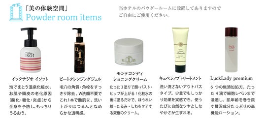 2025年11月14日(金)から16日(日)の3日間、同ホテルご宿泊のお客様(女性)を対象に、艶髪ソムリエ(R)が大浴場およびパウダールームを「美の体験空間」としてプロデュース。艶髪ソムリエ(R) 推奨のヘアケアと、リバースエイジング美容家推奨のスキンケア・ヘアケアをご宿泊の皆さま限定でお楽しみいただけます。