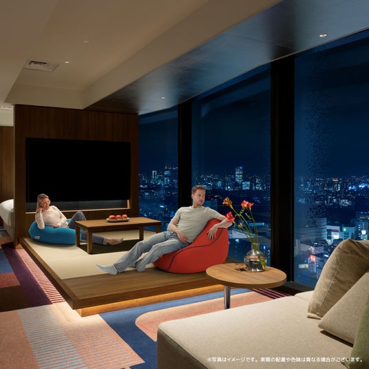 「歌舞伎町のまちを遊びつくす」をコンセプトに掲げるHOTEL GROOVE SHINJUKUと、快適すぎて動けなくなる魔法のソファ「Yogibo」がコラボレーション。61平方メートル のプレミアスイート・ツイン内にYogiboソファを設置し、都心の夜景を眺めながら、