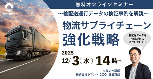 株式会社シマント 【12/3 無料オンラインセミナー】輸配送運行データの検証事例を解説・物流サプライチェーン強化戦略https://simount.com/seminar251203/