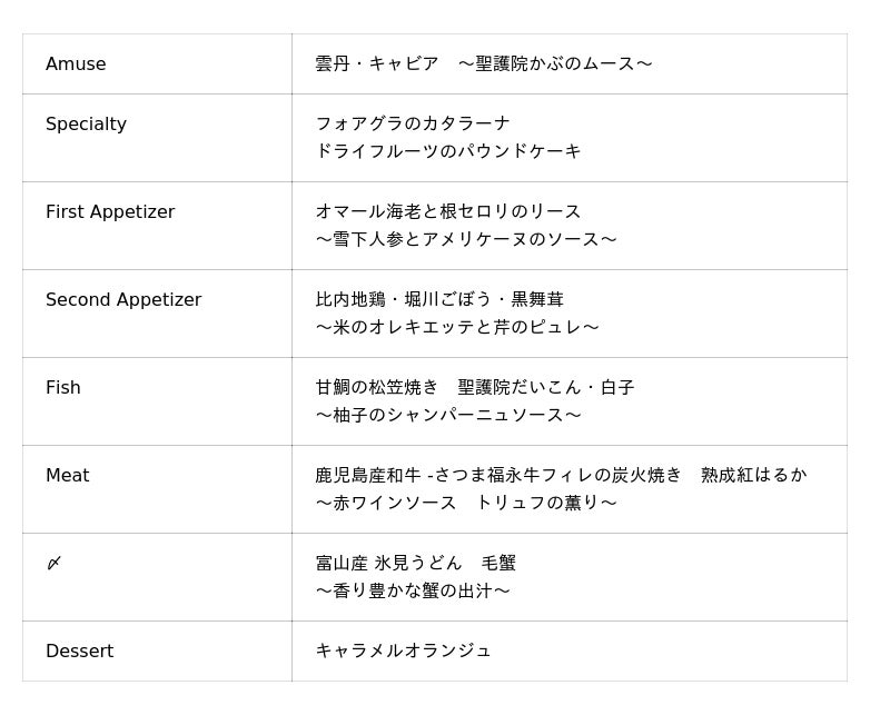- コース金額+700円(お一人様/税込)でコースデザートをクリスマスケーキ(フォレ・ド・ノエル)に変更可能