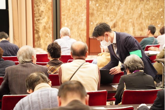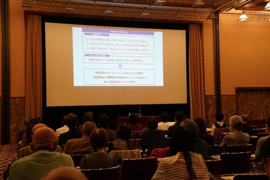 会場では、最新の資料をもとに特殊詐欺被害の状況を説明、来場者による国際電話利用休止の手続きが行われ、59世帯の申し込みがありました。