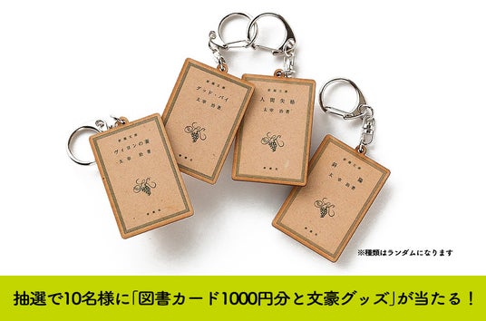 ご使用の『マイブック』のページをスマホやカメラで撮影していただき、投稿フォームに必要事項を入力のうえ、お送りください。お送りいただいた方の中から抽選で10名様に、「図書カード1,000円分と文豪グッズ(木製キーホルダー)」をプレゼントいたします。