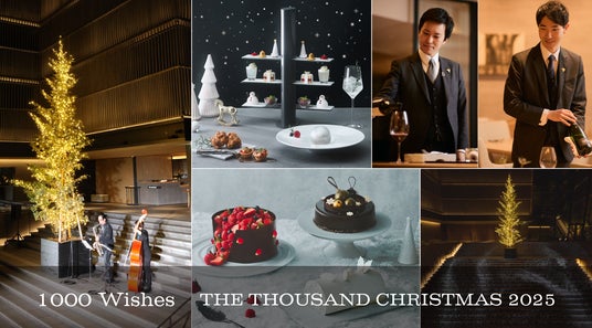 大階段で繰り広げるクリスマスコンサート、この時期限定のプロジェクションマッピング、特別なクリスマスのアフタヌーンティーといった、聖なる季節を鮮やかに彩る催しをご用意いたします。ホテルの象徴である吹き抜けの大階段には、高さ約7メートルを誇る「生モミの木」のクリスマスツリーが登場し、館内全体が希望に満ちた空間に。ゲスト参加型企画「1000 Wishes Canvas」では、ホテルエントランス横のアートギャラリーに設置した大きなタペストリーに、未来への想いを込めた「クリスマスの願い」を書き綴っていただけます。願いがきらめき集うザ・サウザンド京都にて、一年に一度の特別なひとときをお楽しみください。