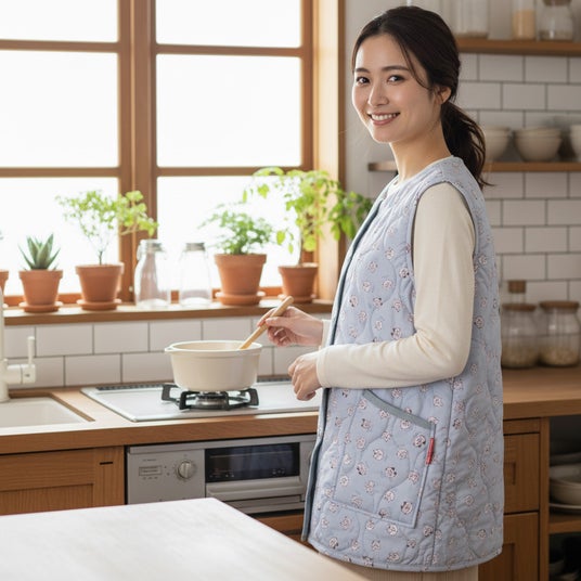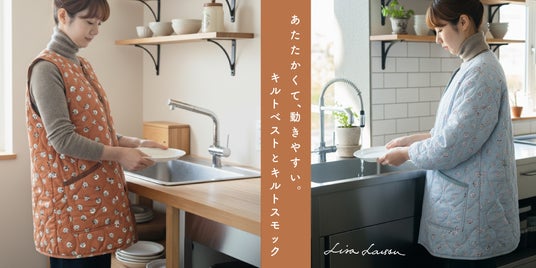 冬のおうち時間にぴったりの新定番、キルトベストとキルトスモックができました。