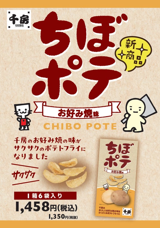 千房ホールディングス株式会社(本社:大阪市浪速区、代表取締役:中井貫二)が展開するお好み焼専門店「千房」は、この度、お好み焼の専門店として培った秘伝の味をポテトスナックで楽しめる新商品「千房 ちぼポテ」を2025年11月6日(木)より発売いたしました。