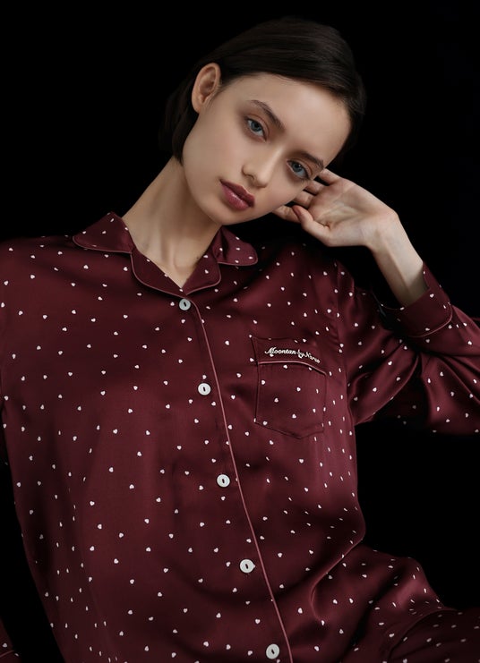 シルクハートシャツパジャマナルエー最上級素材のシルクにホリデーにふさわしい新色が登場!