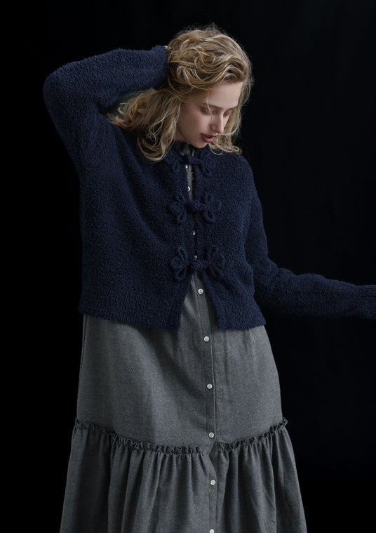チャイナ風のボタンをあしらった、ニットカーディガン。