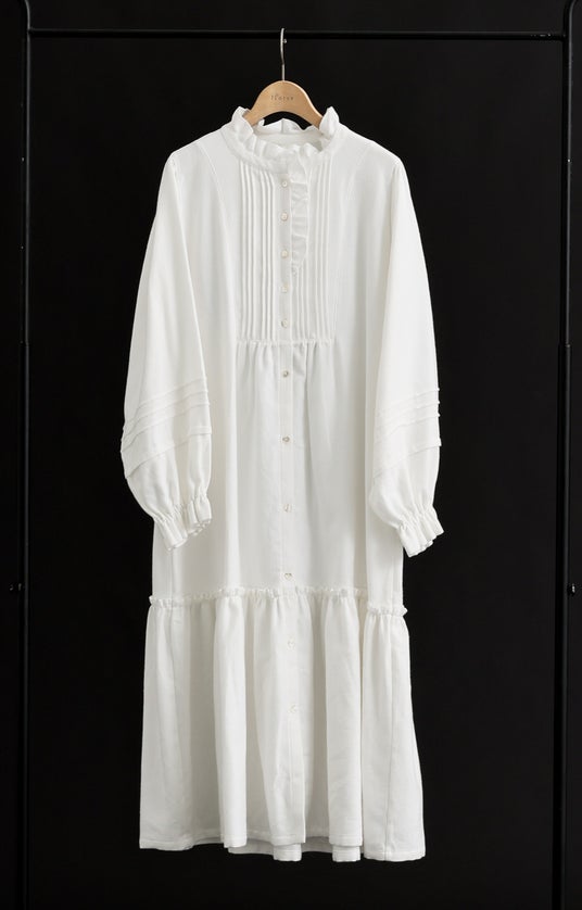 シュークリームガーゼ(R)4+ ワンピース4重ガーゼの空気を含んだふっくらとした風合いが、素肌にやさしく寄り添うワンピース。前開きのデザインに並ぶ上品な貝ボタンがポイントです。