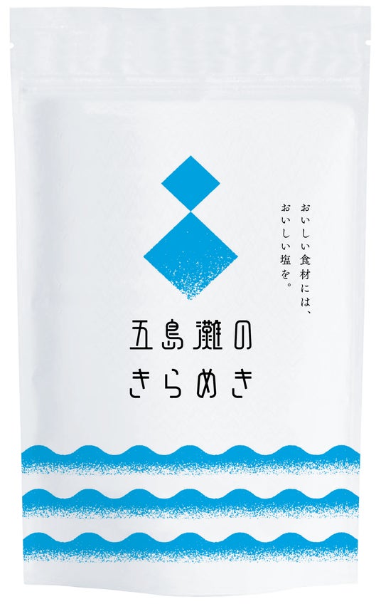 『五島灘のきらめき』は、五島灘の清らかな海水を、昔ながらの「平釜製法」でじっくりと炊き上げたこだわりの塩。高温で一気に結晶化させる一般的な製法とは異なり、50日間かけてゆっくりと水分を飛ばすことで、ミネラルを逃さず、塩カドのないまろやかな味わいを実現しました。「素材のうまみを引き立てる」「塩だけでもおいしい」と好評をいただいています。