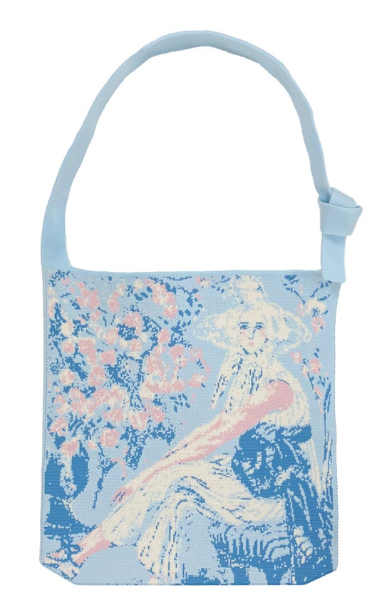 これまで、日本ではあまり紹介されたことがなかった女性画家ジャクリーヌ・マルヴァル。「アール・デコとモード」展で初めて知るという方も多いと思います。大判ハンカチの絵柄にもなっているジャクリーヌ・マルヴァル作《ラ・フィギュラント》を厚手のニットトートに大胆にあしらいました。
