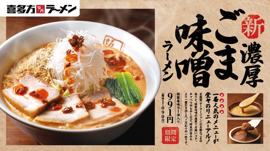 【喜多方ラーメン坂内】一番人気の季節限定商品がリニューアル!選べる3種の『濃厚ごまみそラーメン』11月18日(火) 発売スタート