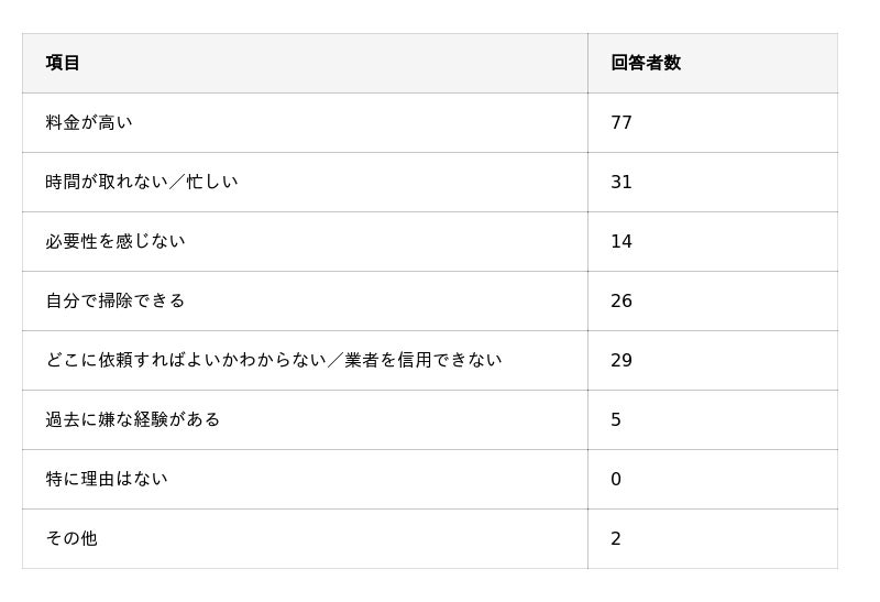 【おうちにプロ】エアコンクリーニングを利用していない理由に関するアンケート調査