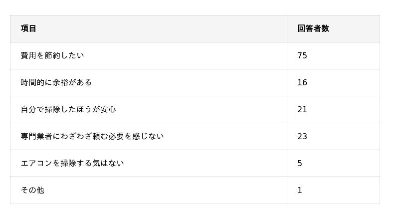 エアコンを自分で掃除している場合、その理由は何ですか?(複数回答可能)