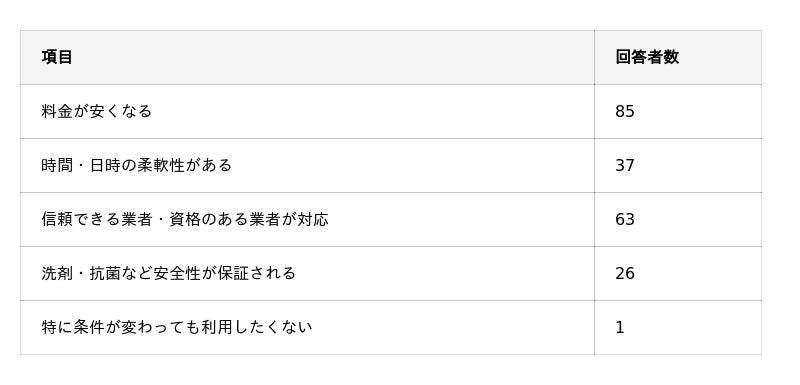 エアコンクリーニングのサービスや条件面において、どの点が改善されたら利用したいと思いますか?(複数回答可能)