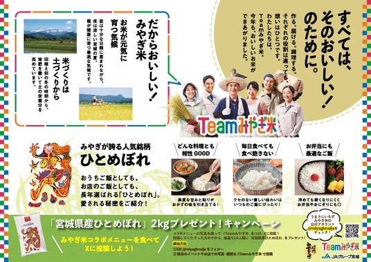 この度、2025年11月13日(木)~ 2025年11月26日(水)の期間限定にて、宮城県米穀周年供給需要拡大推進協議会とJAグループ宮城協賛:みやぎが誇る人気銘柄米の『ひとめぼれ』が登場いたします!