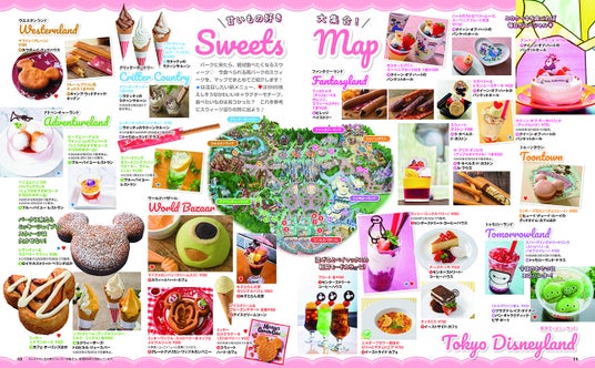 そして、パークに行く数日前から、何をどこで食べるか「ランチ会議」や「おやつミーティング」を開催するのもなかなか楽しい時間です。「レストランガイド2026」には、レストランの席を予約できるプライオリティーシーティング(PS)のシステム紹介や入園後に対象のレストランのメニューを受取時間を指定して注文できるモバイルオーダー(MO)など、スムーズに食事をするためのレストラン活用術を紹介しています。目次を開けば、どのお店でPSが利用できるか、MO対象はどのお店かが一目でわかります。また、巻頭の「Sweets Map」では新メニュー、キャラクターモチーフのメニューが一目でわかるよう印付きで紹介しています。