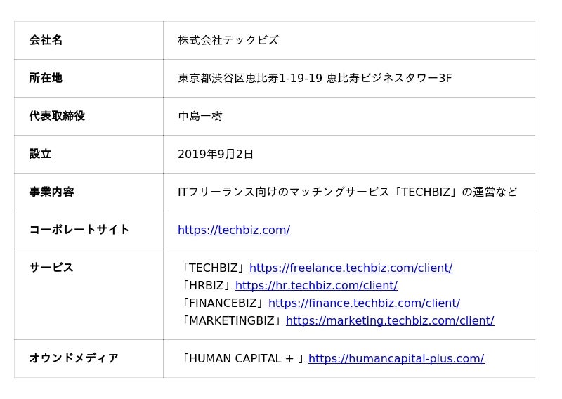 テックビズは「働き方を変え、世界を変えていく」をスローガンに掲げ、国内最大級のITフリーランス向けエージェント「TECHBIZ」を運営しています。近年ではマーケティング、人事、財務経理といったビジネス職のフリーランスと企業をマッチングするサービスにも事業領域を拡大しており、「アジア太平洋地域における急成長企業ランキング」にも2021年より3年連続でランクインしています。