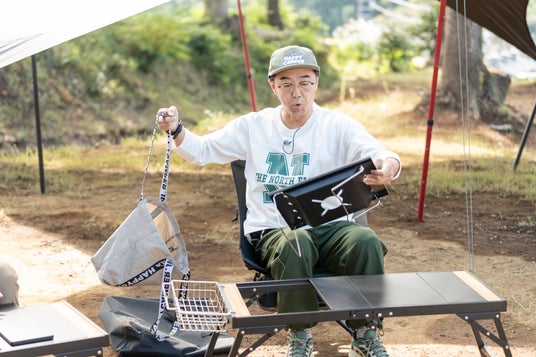 チェアを中心に手の届く場所にギアを配置するいわゆる“コックピット(操縦席)スタイル”のテーブルを組み立て始めると、矢作がシングルバーナーが収まる構造のテーブルだと気付き、「信じられない!バーナーを埋め込めるの?嘘でしょ!?」と驚きの声を上げた。