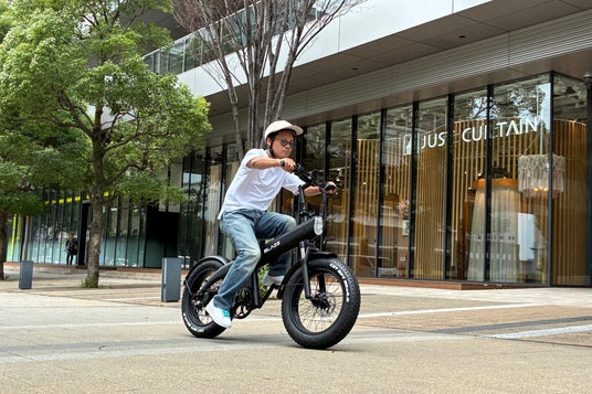 極太ファットタイヤと丸みを帯びたフレーム特徴の電動アシスト自転車です。