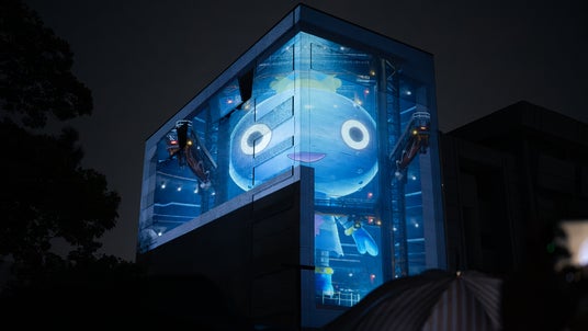 西宮市民会館(アミティ・ベイコムホール)の壁面を2面活用、3D、AI等の技術を用いたストーリー性の高いプロジェクションマッピングを実施。