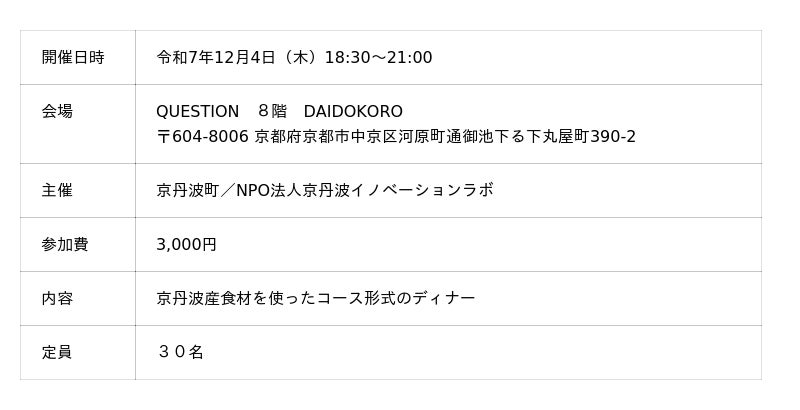 CLUB 京丹波ディナーイベント(クラブ京丹波ディナーイベント)開催決定!