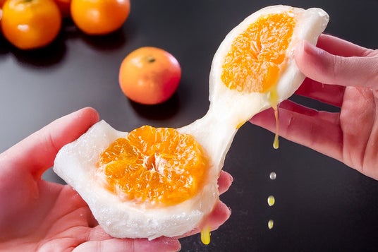 そこで、コシよりもなめらかさと伸び、そして果汁に合わさった時の口どけを重視した専用の餅を仕立てました。きめ細やかでなめらかな口どけの餅は、果汁と合わさった瞬間、餅と果汁が一体になり、やわらかくとろっとした絶妙な食感を味わえます。