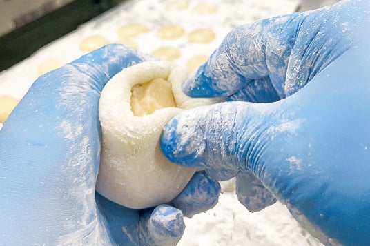 そして、餅でそっと包み込むと、手に伝わる重みと弾力から、ずっしりと濃厚な美味しさがひしひしと伝わってきます。