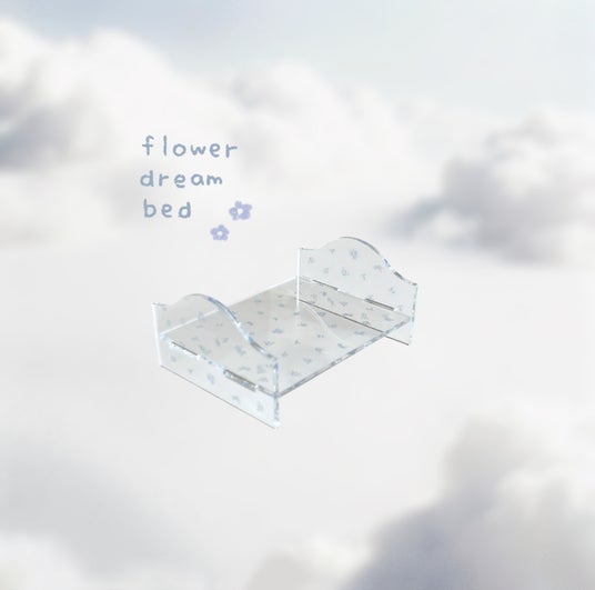 お花柄のとうめいなベッドは、お花畑で眠ることが大好きなねむちゃんのために、夢の中でもお花に包まれて眠れますように。
