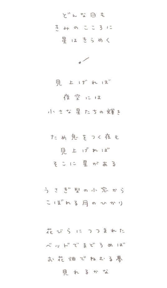 そして、おうちの屋根には一面の星空を描きました。どんなに心が揺れる夜も、見上げれば必ず星は輝いている――そんな想いを込めて、この小さな星空を作りました。