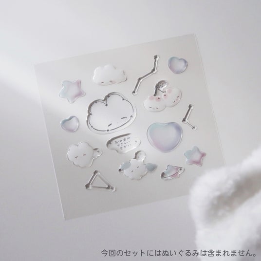 とうめいなおうちに合わせて、シールもゼリーのような透明感のあるものに仕上げました。