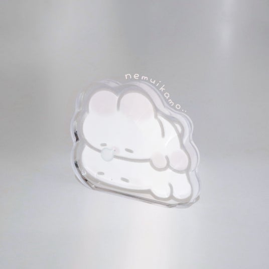 光を宝石のように集めて輝く、こだわりの厚みのあるアクリルに、べびーねむちゃんの優しい表情を閉じ込めました。とうめいなおうちの中でも、デスクの上でも、ベッドサイドでも、毎日の通勤や通学のお供にも。小さな手のひらサイズのべびーねむちゃんが、誰かの大切な毎日に寄り添えたら、そんな想いを込めて作りました。