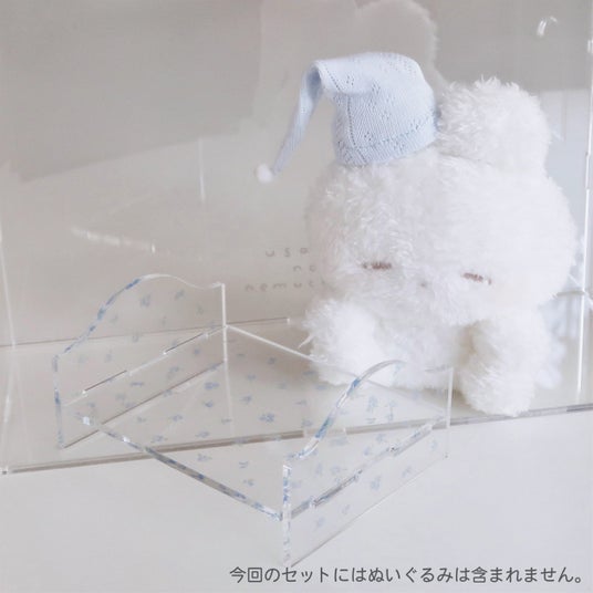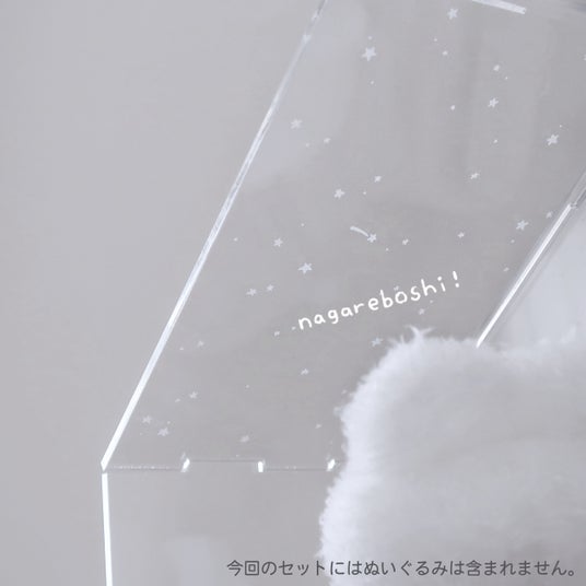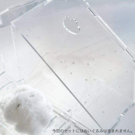 第2弾は、眠ることが大好きな「うさぎのねむちゃん」のためのとうめいなおうちと、REMMEさん描きおろしのアクリルスタンド、とうめいなぷくぷくシールが付いた『うさぎのねむちゃん 星降る夜の、とうめいなおうち アクリルスタンドとぷくぷくシールのセット』です。