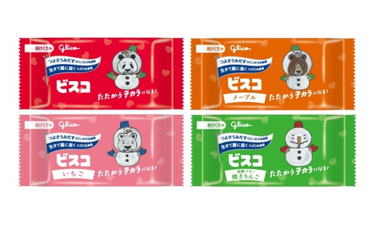 江崎グリコ株式会社は、「生きて腸に届くスポロ乳酸菌」と「つよさうみだすGCL1815 乳酸菌」の2種類の乳酸菌が入った「ビスコ」から、クリームの形がゆきだるまの形になった「ビスコ」を、2025年11月18日(火)より全国にて期間限定で発売します※1。今年は小箱に加え、初めて大袋でもクリームの形を変更します。