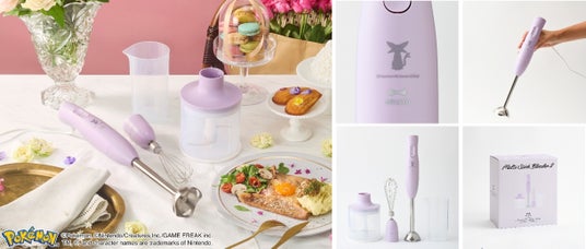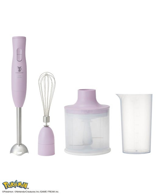 エーフィがデザインされた、特別なパープルカラーのマルチスティックブレンダー。つぶす・混ぜる・刻む・砕く・泡立てるの1台5役で、毎日のお料理はもちろん、フルーツスムージーやカフェドリンク、ふんわりホイップクリームなど、おうちカフェメニューも手軽に愉しめます。