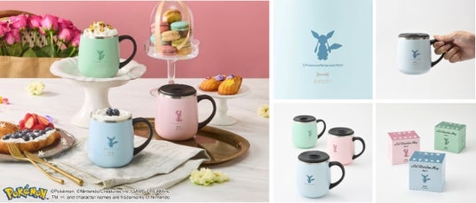 カフェタイムやおうちブレイクにぴったりな、真空二重構造のステンレスマグ。リーフィア、グレイシア、ニンフィアをそれぞれイメージした、グリーン・ブルー・ピンクの3色展開です。