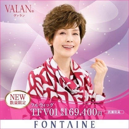 「ヴァラン」ブランドからは、フルウィッグ『TFV01』と『TFV02』も11月15日(土)に全国のフォンテーヌ直営店および百貨店内のフォンテーヌコーナーで販売を開始します。どちらも抗菌・防臭加工のベースネットを採用しました。シニア世代にもカラーを楽しんでいただけるよう、上品な明るいブラウン系の新色で、ショートレングス/ソフトカールのスタイルに仕上げました。