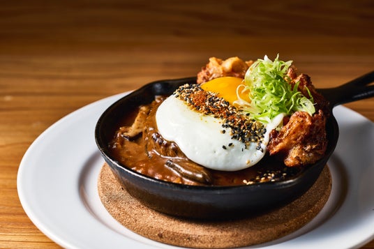 Koko Head cafe 「ココモコ」¥1,920国産牛100%パティにグレービーソース、キムチ天ぷらと目玉焼きをトッピングした一番人気のメニューです。