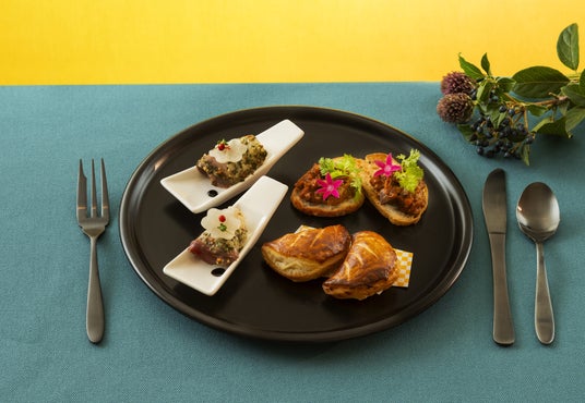 鶏もも肉を赤ワインと香味野菜でじっくりと煮込み、生姜とレモンのコンフィチュールを合わせてパイで包み焼きに。芳醇な赤ワインのコクと爽やかな風味、バターが香るパイのハーモニーをお楽しみください。