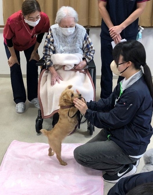 NSGグループの医療法人愛広会(新潟市北区)が運営する介護付有料老人ホーム「愛広苑壱番館」(新潟市中央区田町)と同グループの国際ペットワールド専門学校(新潟市中央区笹口)は、動物とのふれあいを通じて入居者の『情緒的な安定』や『生きがい』『意欲』など生活の質(QOL)の向上と学生の実践的な学びの機会づくりを目的に、アニマルセラピー実習を2025年11月12日(水)に開催しました。
