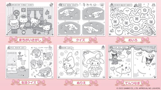 サンリオキャラクターズと楽しく遊ぶミニブック全6冊が新発売! 持ち歩ける大きさでお出かけにも贈り物にもピッタリです。電車や車での移動、病院やレストランの待ち時間、いつでもどこでも遊べるかわいい小さなゲームブックです。お子さんが大好きな迷路や間違い探しがたくさん。貼って遊べるシールも付いています。文字が読めなくても、鉛筆がなくても遊べるので小さいお子さんにもおすすめ。何度でも繰り返し遊べるおもしろいゲームがギュッと詰まった本です。