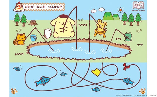 ポムポムプリンたちがキャンプに行くよ。湖では何が釣れるかな?