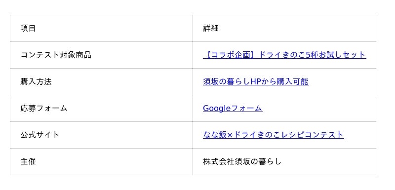 コンテストは、「須坂の暮らし」と共同開発した「【コラボ企画】ドライきのこ5種お試しセット」の購入者を対象に開催されます。