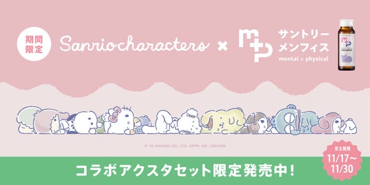 サントリー食品インターナショナル(株)(以下、サントリー)は、女性特有のイライラ期に対して、心と体の両面からサポートすることをコンセプトとしたセルフケアドリンク「menphys GABA&大豆イソフラボン&鉄分」にて、(株)サンリオの人気キャラクターとコラボした「推しとやすもう」スターターセット(全54種)を、11月17日(月)より、サントリー食品オンラインストアで期間限定受注販売します。