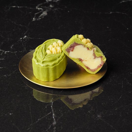 伝統的な焼き月餅とは違い、雪肌のようになめらかで、もちもちっとした半生タイプの月餅です。