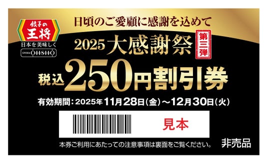 日頃より餃子の王将をご愛顧くださっているお客様へ感謝の気持ちを込めて、