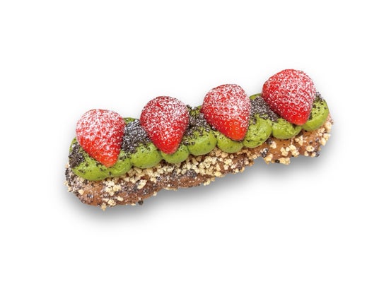 鮮やかなピスタチオクリームといちごを贅沢に組み合わせた、華やかなクリスマスカラーが印象的なメニュー。