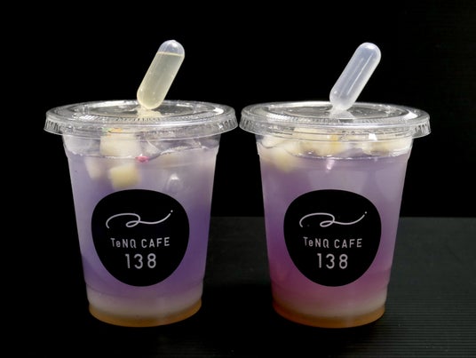 「LOUNGE Q」エリアにある「TeNQ CAFE 138」では、キービジュアルの「オリオン大星雲(M42)」をイメージしたオリジナルドリンクを提供します。爽やかなピーチ味で、お客様ご自身でシロップを加えていただくことで、色の変化もお楽しみいただけます。