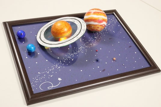 太陽系にある8つの惑星の模型を作ります。それぞれの惑星の大きさに合わせた模型に模様を描き、背景に絵を描いて、自分だけの惑星模型を作ります。